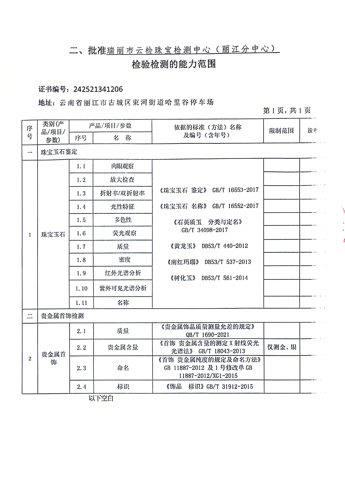 主要依据标准:GB/T 16552-2017《珠宝玉石 名称》、GB/T 16553-2017《珠宝玉石 鉴定》。